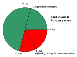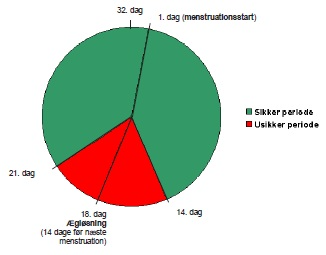 De sikre perioder ligger således fra sidste menstruations første dag og 14 dage frem samt fra dag 21 efter sidste menstruation og frem til næste menstruation (se figuren).